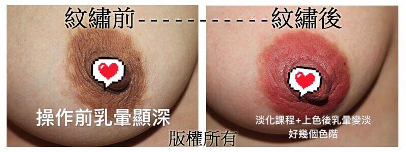 After圖是剛進行完淡化課程及上色後乳暈略紅的照片,結痂脫落後乳暈明顯淡了好幾個色階。